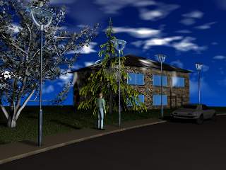 Street LightOur final project of this year is a street light for residential areas. We are really working together with a big company, Schreder. And the best will be produced, it is a competition but not only for us, but also other design firms. I find it really interesting, because I know how to use Lightscape and Max for 99% accurate renderings, unlike the others in class. I like lights, even in 3D they are used to make a mood, especially cool with fog ! so here is what came out.