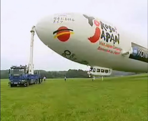 Now here is a real Zeppelin, the only one existing at this time, the biggest airship flying. 75m long, the Zeppelin-NT. I certainly never thought I would see this one but it came to Luxembourg and made a short stop in Useldange before flying to the Bodensee and then across Siberia to Japan. The difference to a blimp is that a zeppelin has an internal structure.