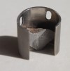 This the last jewely I made, especially for a special person called Cadia, I made it for her birthday. I got a Gibeon Meteorite and I found a cross-section that is in shape of a heart. I was wondering for a long time how to attach it as a pendant, after etching and analysing, I found out it has a high Nickel content, this made me change the design so the meteorite would not touch the skin, so I made a titanium enclosure around. I wanted it to be very plain, modern, simple. Polished inside and sandblasted outside. It regroups many symbolic meanings as I find. I like the contrast of shiny and dull of one same material. The hidden heart inside, the unique meteorite section, shiny inside, outside is just plain, simple shape. I had to rush and had quite tendinitis in both arms to make this otherwise it could have been better maybe. Titanium is very hard and stiff.