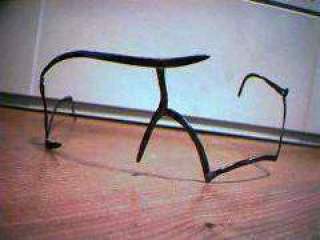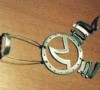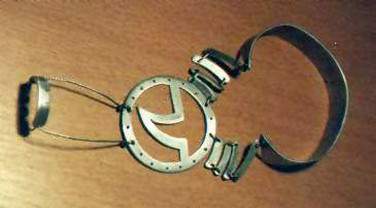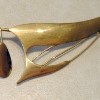This one was inspired by some girl I wanted to impress with this, but somehow everything went wrong and I never got to know her (I found out her name was Daphne). I worked long on this one and it was very complicated to solder 4 parts on one spot, once the one was ok the other one fell off again. And polishing was also a pain, all the little cracks and wires. it is made out of brass, wires and steel cables. Later I was going to try it on her friend, Veronique (wow, she didn't even want to get to know me :(( ) but same thing, so I don't really like it anymore. Well it suits my sister so well I gave it to her for Christmas and for her engagement.