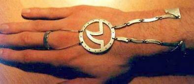 This was inspired by a very pretty Iranian girl out of my class, Yalda, she asked me to make her something, but then didn't want it for boyfriend reasons(?)or something. So the design was lying around. Later I decided to make it for Josiane , the coolest girl I knew at that time. She is more or less the same type, also long straight black hair...I sent it to her but never heard from her since, too bad she has a boyfriend. yeahp. Man when I see her, Wow. The shapes are inspired from this stupid book we had to read in school about the goutte d'or, the gold drop, an oriental symbol for freedom(?), I thought that would fit.