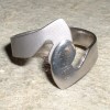 This is my first Titanium jewelry. Since the goldplating didn't last I figured that titanium should not have such problems. It didn't turn out as it should have but it looks nice. I wanted to have a contrast between polished and sandblasted. However it was supposed to be latched together in the notches but then it was much too small and the stiff titanium was not so easy to shape or polish. It is so stiff soldering is not necessary (which I couldn't do anyway). I like special materials, not just the shape makes it interesting but also the material that was used, it gives it a nice story and touch.