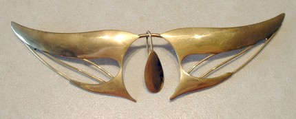 This was one special pendant I made for Tanja. It was meant for Valentines day but I didn't get it done for then and for other reasons I didn't finish it for that day. It is about 8cm wide gold plated brass, the necklace exits at the points of the wings.