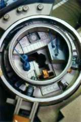 well there is a little bit of paper, I put a piece of sandpaper and tape in which are made with paper like material. the whole thing is glued onto a fiberglass board, and there is a tempered steel nail that sticks out the back to hang up. some of the objects are a specific shape and are grouped together for symbolic purposes but not all. there is a piece of an old visa card and a microchip in it as well as a windows95 demo CD (har har). even an Intel balloon. and a coca-cola cap and can, some jeans, Gore-Tex, floppy disks, a phone card chip, reflectors, Teflon, propeller, bullet, velvet...